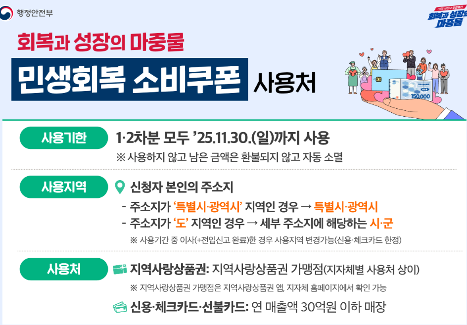 - 지급 시기: 2025년 9월 22일 ~ 10월 31일 신청, 11월 30일까지 사용