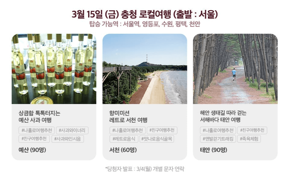 | 3월 15일(금) 충청 로컬여행 서울 출발 |