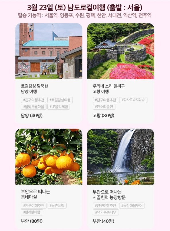 | 3월 23일(토) 남도로컬여행 서울 출발 |