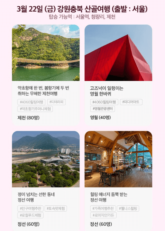 | 3월 30일(토) 강원충북 로컬여행 서울 출발 |