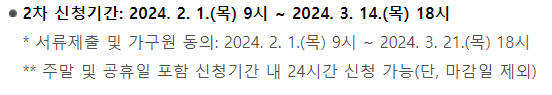 - 차상위계층 증명서 : 국민건강보험공단 홈페이지나 주민자치센터에서 발급가능합니다.
